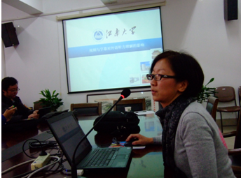 研讨会首先由周迓菁老师介绍 “英语多媒体视频阅听过程中的知觉负载与选择性注意”的研究开始,她详细讲解了本研究的理论基础、研究问题、实验设计、数据分析和讨论以及得出的结论和研究的局限性;接着,顾琦一教授介绍了“视频与字幕对外语听力理解的影响”的研究,并指出字幕的运用表面上可能促进了学习者对输入的理解,而实际上可能阻碍学习者语言能力的进一步发展;视频对听力的促进作用不仅仅取决于视频本身的特点,也取决于学习者语言水平及其对音频材料的理解程度,与音频无关的视频对二语理解甚至起到阻碍作用。因此使用时应注意学习目的、任务特性和学习者语言水平。随后,英语专业研究生李莉介绍了“输入模态和输入长度对中国英语学习者理解的影响”的相关研究。随后,在座的老师还与她们进行了热烈的互动讨论。
