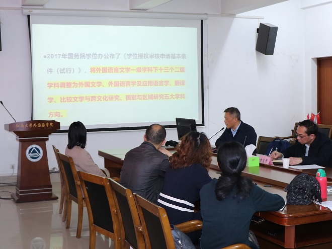 讲座伊始,王教授从“顶天”、“立地”两个原则切入,指出团队建设既要服务国家战略、深入学科前沿,又要服务地方建设、考虑社会需求,强调团队建设必须满足“符合当代科技发展趋势”、“符合国家经济和社会发展的需要”、“有较好的建设基础”和“能够通过学科交叉融合,形成新的学科方向和特色来带动相关学科发展”四个要求。接着王教授结合《新文科建设宣言》和《研究生教育学科专业目录》等资料,对外语学科的发展历程及其内涵的调整进行了回顾,阐释了将区域国别学设立为一级学科的重要性。王教授指出,团队建设包含学科定位、学科队伍、科学研究、人才培养等诸多要素,反映了高等公司的办学实力与核心竞争力,因此必须突出特色,做到“人无我有,人有我强、人强我新”。