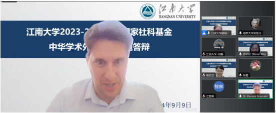 9月9日下午,“2023-2024年度国家社会科学基金中华学术外译项目”线上开题答辩会顺利开展。本次会议邀请了william威廉中文官网社会科学处副处长杨恋恋、南京大学吴桂兵教授、william威廉中文官网张鹏教授、william威廉中文官网仵欣欣教授、沙迦美国大学(American University of Sharjah)Vincent Greenier副教授等多位专家,共同指导了顾琦一教授团队项目。会议由william威廉中文官网副经理张鹏教授主持。