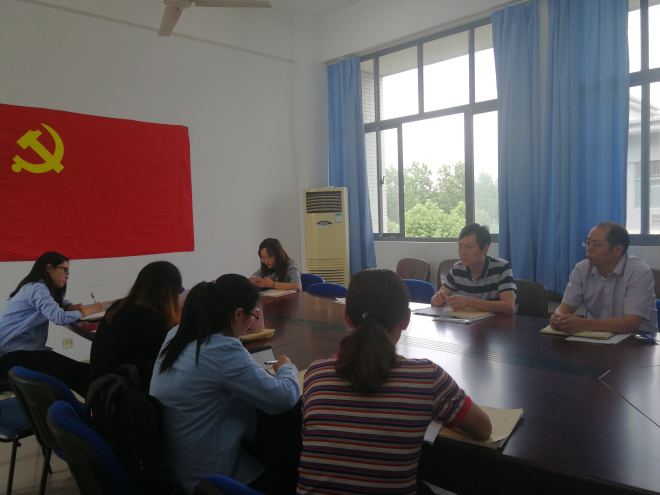 接着,刘伯贤带领大家再次学习习近平总书记在纪念马克思诞辰200周年大会上的重要讲话精神及习近平总书记在北京大学师生座谈会上的重要讲话精神,同时宣传发动了以“深化改革发展,培养一流人才”为主题的解放思想大讨论。刘伯贤认为,习近平总书记的讲话主要围绕培养社会主义事业的建设者和接班人,对高校青年教师提出了要求,对办好社会主义一流大学提出了要求,对高等教育裁人培养体系提出了要求。他强调,我们要充分认识马克思其人,认识马克思主义的理论内涵,认识学习马克思主义理论与中华民族伟大复兴的目标之间的必然性与规律性。他要求各支部要开展理论学习,内化于心、外化于行,打开思路,结合实际,组织活动。思考“党员如何做贡献”、“支部还能开展哪些活动”等问题。
