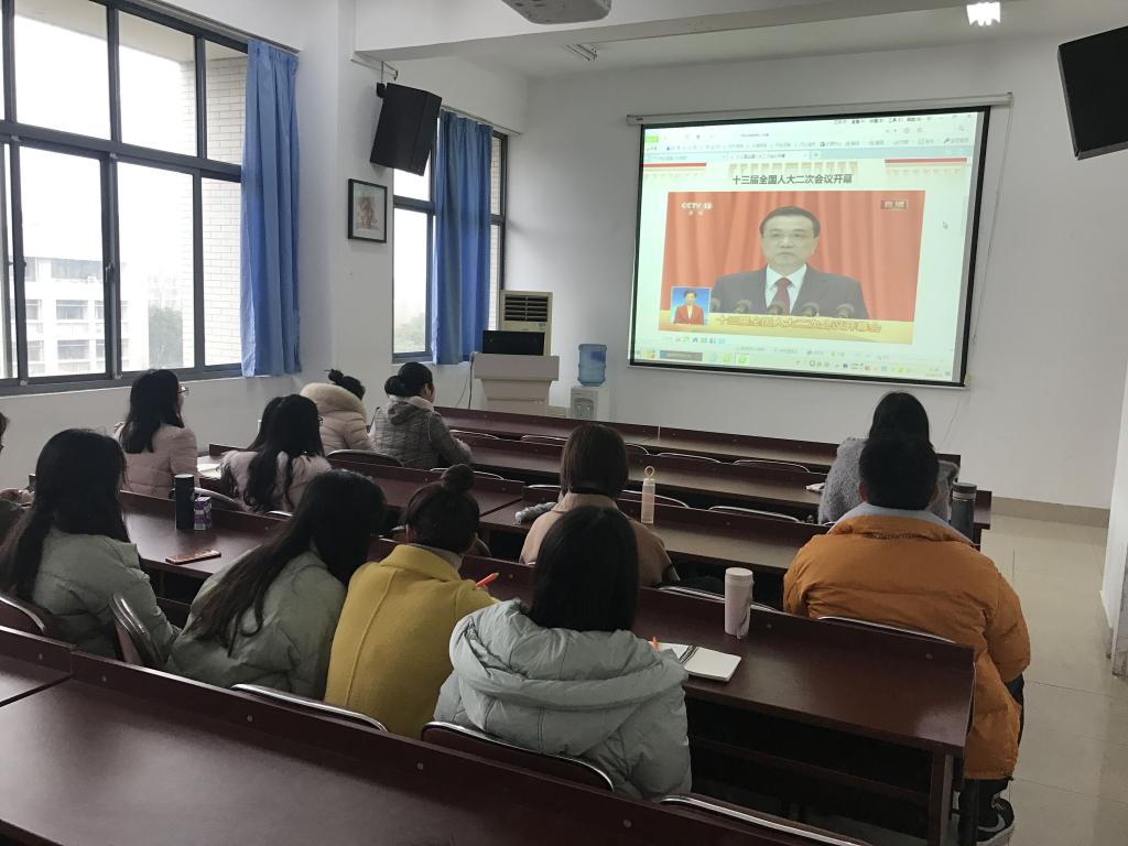 上午九点整,十三届全国人大二次会议在人民大会堂开幕。同学们与老师们一同观看了国务院总理李克强关于政府工作的报告,关于2018年国民经济和社会发展计划执行情况与2019年计划草案的报告。在观看直播过后,大家针对直播的会议内容各抒己见,表达了各自的感想。同学们纷纷表示会认真学习贯彻两会精神,关心两会动态,关心社会变革,提高自身能力。