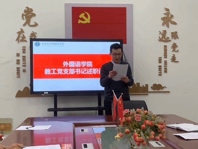 为贯彻落实习近平新时代中国特色社会主义思想,压紧压实基层党支部书记抓党建的政治责任,根据公司《关于开展2021年度基层党组织书记抓党建述职述责述廉评议考核工作的通知》精神,1月5日下午,公司党委在文科楼A331举行2021年度教工党支部书记现场述职评议考核大会。公司党委委员、教工党支部书记、党员代表参加会议,会议由公司党委书记史志洪主持。