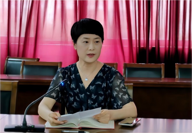 接着,拓展部主任刘玲举例说明了二十大报告精神融入大学英语教学的思政点设计方案,结合习近平总书记金句分析实例,并明确工作部署,包括二十大报告相关思政元素融入教学内容、数字化赋能课程思政改革、课程思政示范专业和示范课程建设以及打造课程思政品牌成果。