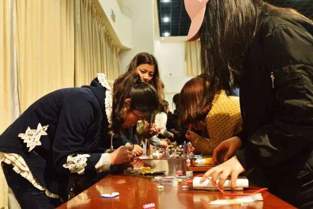 本次晚会携手机械公司,内容丰富,形式新颖, “化妆指导”“手工手机壳制作”“鲜花玫瑰赠送”“等活动同时进行。同学们踊跃参与,现场气氛活跃,热闹非凡。美妆指导,让女生们变得更加靓丽自信;DIY的手机壳,受到了大家的追捧,展现了女生们的心灵手巧。