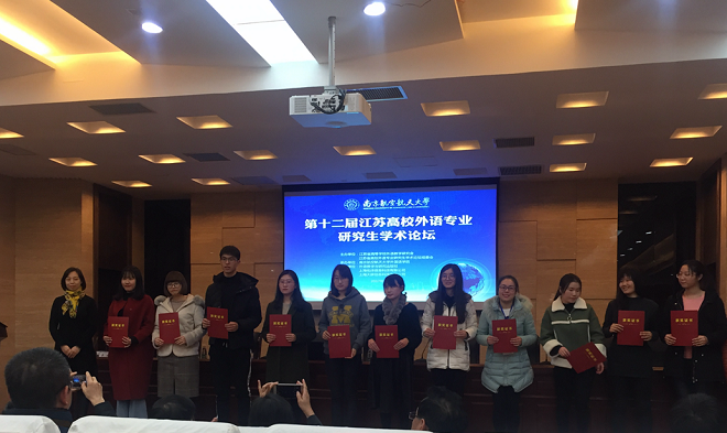 2017年12月8至10日,由江苏省高等公司外语教学研究会和江苏省高校外语专业研究生学术论坛组委会主办,南京航空航天大学william威廉中文官网承办的第十二届江苏高校外语专业研究生学术论坛在南京航空航天大学举行。省内高校160余名博士、硕士研究生及其领队教师汇聚一堂,公司16级研究生马小越、邱思佳、孙培培、王坤淼、谢婷婷、余婷婷、张芮和17级研究生潘婧在朱义华副经理的带领下参加了此次论坛。