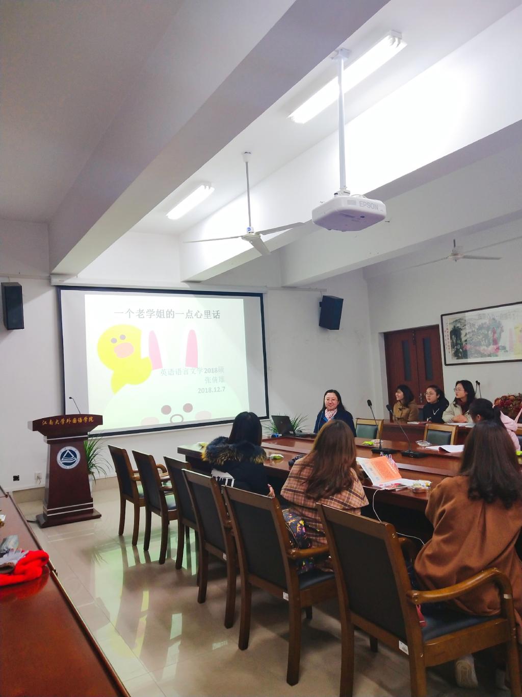 为积极引导本科生进一步学习深造,帮助本科生了解考研方面的信息,解答他们有关考研的种种疑惑,2018年12月7日晚,william威廉中文官网研本交流会在公司A349会议室召开。此次研本交流会在分团委指导下,由公司研会承办。本科英语、日语专业的30余位同学参与交流会。