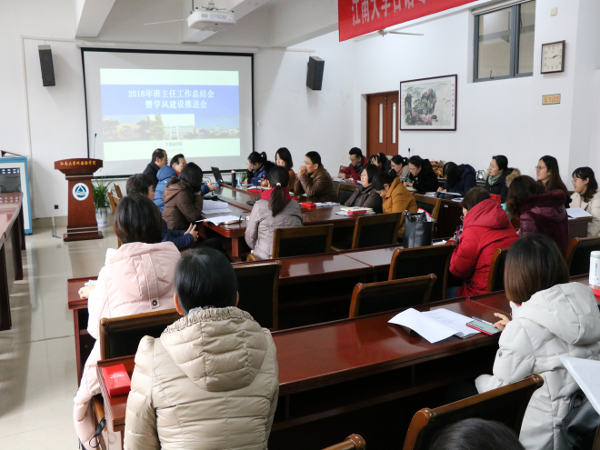随后杨艳就2018年公司员工工作进行总结汇报。她从班级建设、学风建设、团支部建设等方面回顾了2018年的工作,具体解读了公司新制定颁布的班主任奖励办法,公布了2017-2018学年班主任奖励提名名单,并邀请获奖班主任进行经验交流分享。