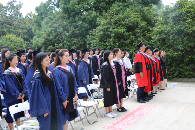 在雄壮嘹亮的国歌声中,以“忆江南岁月感恩师点滴,展外语才华铸人生辉煌”为主题的毕业典礼拉开帷幕。全体公司领导、硕士生导师、2020届本科生及硕士毕业生、亲友代表、两办主任、研究生秘书、分团委书记、辅导员等出席典礼,共同见证同学们开启人生新征程的重要时刻。典礼由公司党委副书记刘伯贤主持。