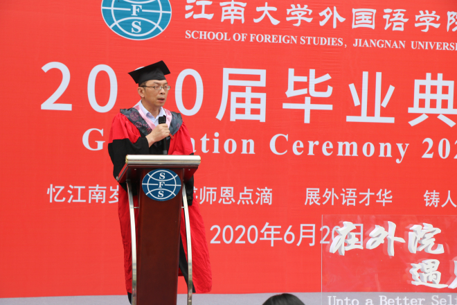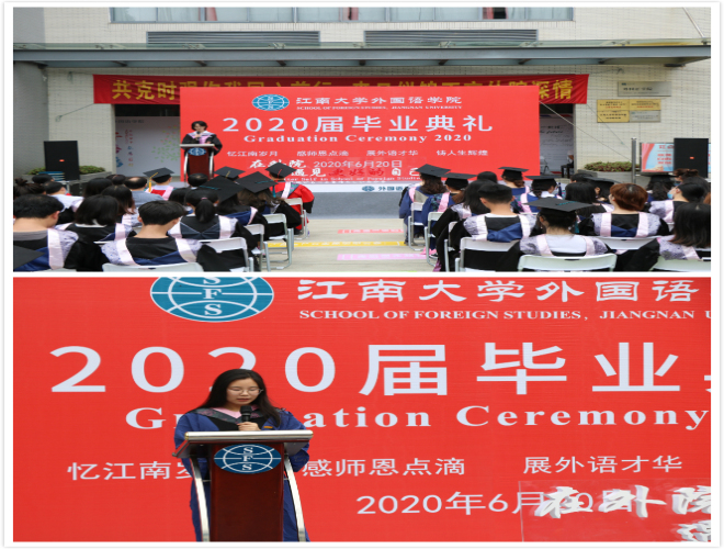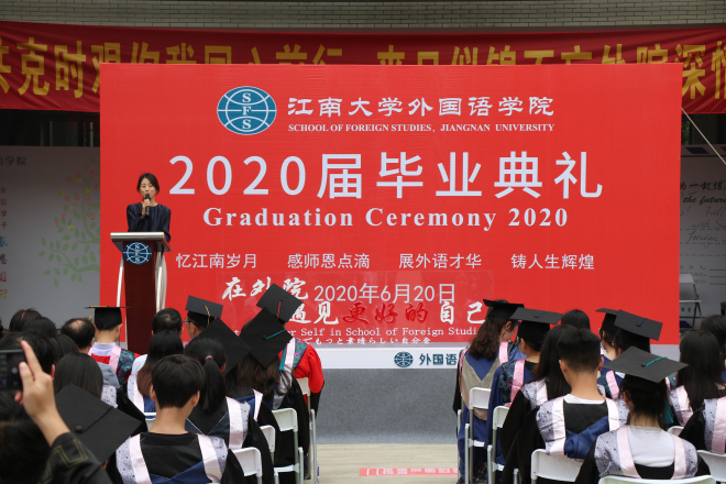 谢瑜老师作为教师代表发言,用睿智温馨的话语表达了对同学们的衷心祝愿和殷切寄望,希望同学们在新的人生航程中胸怀梦想、实干担当,求真务实、开拓进取,用实际行动诠释新时代江南外语人的历史使命和责任担当。