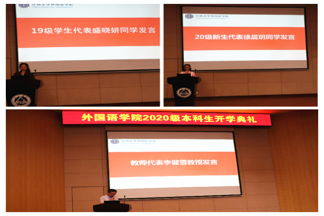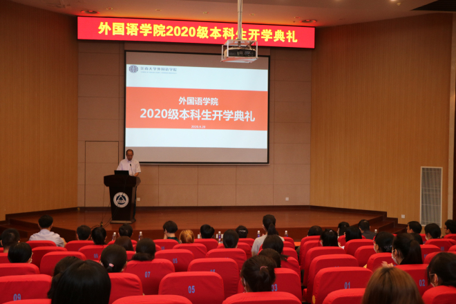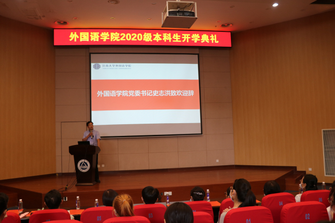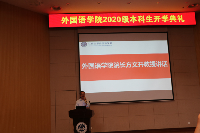 开学典礼开始前,参加典礼的师生进行现场测温,并采取隔位的方式安排座位。大会在庄严的国歌声中拉开帷幕。首先,由公司党委书记史志洪致欢迎辞。史书记首先欢迎2020级新生加入外院大家庭,在谈到如何过好老员工活时,史书记指出:大家要坚定理想信念,做好当下的学业规划,在前行的路上不断挑战突破自己。之后,由教师代表李健雪教授发言。李教授主要分享了青年的学习状态和青年人的理想,“树立远大理想,专业上科学学习方法,青春不留遗憾”引发了新生们的思考。在员工代表发言环节,19级员工代表盛晓妍同学用三组词——人与众、忙与闲、星空与大地给新生们提出了中肯的建议。20级新生徐晨玥同学代表全体新生站在新的起跑线上热情发言,表达了对未来学习生活的憧憬。会议最后,经理方文开教授以“道”为切入点,为新生解读了“笃学尚行,止于至善”的江大校训,分别从为学、为世、为人三个方面给新生提出期望。最后方经理说:语言的学习要注重融合,在明确目标的基础上要指定详细的计划,大学期间多读经典著作。