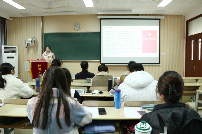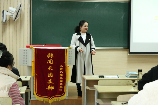 在“听听党员的故事”环节,机关退休第四党支部书记鲍国庆老师讲述了自己1971年工作、1973年入党、1974年高考入榜的经历,使我们认识到不管在什么情况下,都不能轻言放弃,而要不忘初心,砥砺前行,不断地去追求探索看似艰难的事情。鲍老师用这样一句话来形容党对她的重要性,“我有两个母亲,一个是生我养我的母亲,还有一个便是培养我扶持我的中国共产党。”鲍老师的发言充满了自己对于党的热爱与感激之情,让我们为之动容,为之钦佩。分团委书记杨艳老师从讲述一个弃学少年如何一步一步走向辉煌的故事入手,启发大家无论处在什么样的境地,都要努力奋斗,坚持到底就会有收获。然后,杨艳老师分享了她的战疫故事,启示我们怀揣着一颗纯粹的心、一颗责任担当的心、一颗奉献的心。杨艳老师为了守护疫情期间留锡的员工,往返各地,四次隔离的故事也让我们十分感动,正如基辛格曾说过:“中国人,总是被他们之中最勇敢的人保护得很好。”杨艳老师就是这样一个勇敢的人,我们从她身上学到了舍小家为大家的精神,也明白了入党需纯粹的道理。