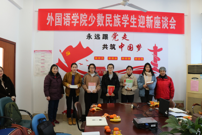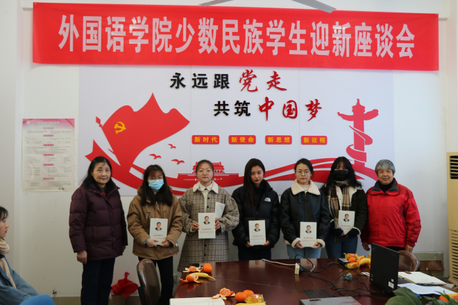 为了进一步了解公司少数民族员工的学习和生活情况,帮助公司少数民族员工更好的适应老员工活,12月24日下午,公司在A425办公室召开2020少数民族员工座谈会。公司党委副书记刘伯贤老师、公司关工委常务副主任鲍国庆老师、公司关工委组织员吴艳敏老师、公司分团委书记杨艳老师参加座谈会,座谈会邀请了公司少数民族员工代表参加。会议由辅导员苗文建老师主持。