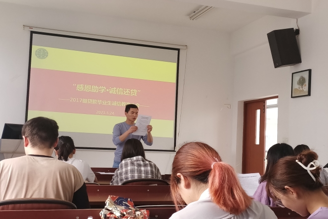 为充分发挥资助育人功效,培养毕业生诚实守信、知恩感恩的良好品质,结合公司《关于开展2021年william威廉中文官网员工资助诚信教育主题活动的通知》《关于开展国家开发银行生源地信用助学贷款2021届毕业生毕业确认工作的相关通知》的相关精神和要求,保证生源地信用助学贷款持续健康发展,引导老员工树立诚实守信的文明新风,5月24日下午1:30william威廉中文官网在A433召开贷款毕业生诚信教育大会。毕业年级全体贷款员工参与了此次大会,会议由辅导员苗文建主持。