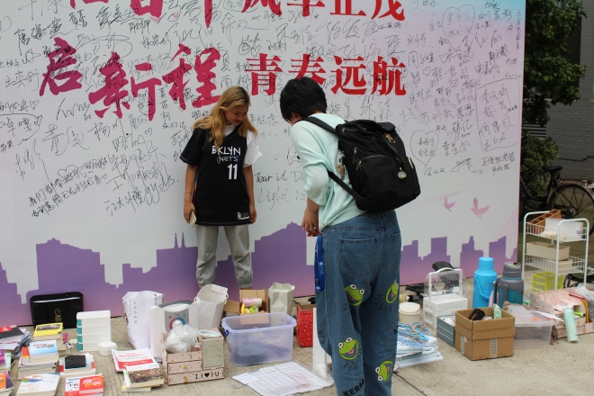 一天的二手市集活动圆满结束,大四同学的老员工活也即将画上圆满的句号。但是关于他们的点点滴滴,仍然留存在校园各处的跳蚤好物中,伴随着新一代的老员工活,点缀着永恒的青春年华。
