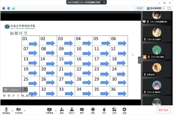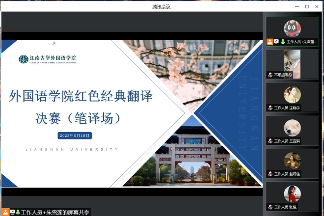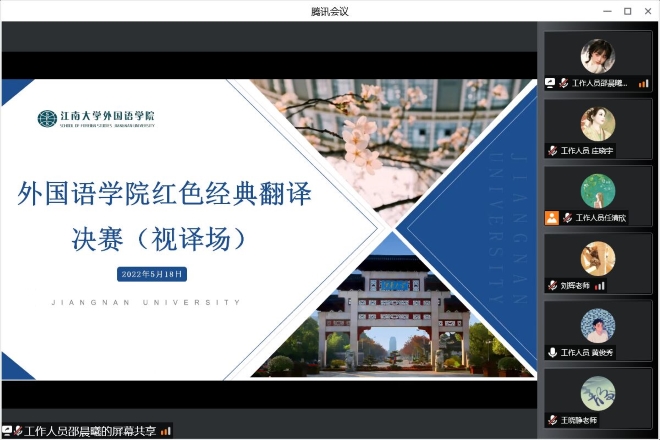 本次红色经典翻译大赛分为线上初赛和线上决赛两部分。前期经过自主报名,全校共有100余名员工报名参加。4月7日经过线上初赛后,选拔36名同学参加最终决赛。受到疫情影响,决赛改在线上进行。5月18日下午在腾讯会议室举行决赛,决赛分为笔译和视译两个环节,邀请撒忠清老师、王晓静老师、刘辉老师担任评委。本次笔译和视译的试题均从《中国共青团团史》、《中国共产主义青年团90年》、《共青团书系》、《中国共青团年鉴》、《中国共青团史稿》等红色经典著作中选取,旨在让员工重温红色经典,激励青年人用奋斗和拼搏汇聚蓬勃力量,坚定对中国特色社会主义的信念、对共产主义的信仰,同时以赛促学培养学习热情,提升翻译专业能力。