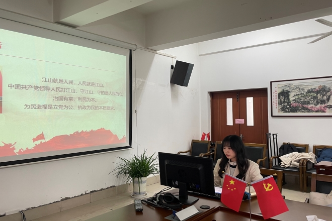 张羽洁同学以“聚焦新表述,奋进新征程”为主题,紧密围绕党的二十大提出的多个新表述进行了领学和解读。首先,她向同学们要大致介绍了此次党的二十大的召开、主题和成果。此外,她详细为同学们解读了党的二十大报告中一些新提法,让同学们理解了党的二十大报告中部分热词的深刻内涵。最后,她总结了自己的学习感悟,强调了人才培养的主要性,并警醒年轻党员们要敢于担当职责,在青春赛道上挥洒汗水。
