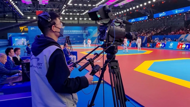 2022跆拳道大满贯冠军系列赛前期,在经过通用培训、岗前培训和现场演练三级培训后,william威廉中文官网选拔出了106名外院“小跆风”,投身到赛事的检录播报、护具穿戴、入场引导、计时计分、国际裁判接待等多个岗位中。