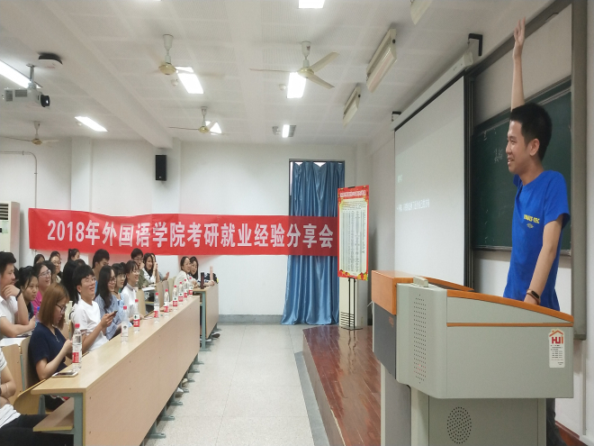 日语1402的聂翔学长以外交学专业总成绩第一名的成绩成功考入外交公司,他尤其强调了暑期夏令营的重要性和兴趣的驱动力。英语1401班的朱玲学姐,九月份即将就读于华东师范大学数学公司,学姐作为跨专业考研的代表,为同学们分享了她的考验规划和心理路程,并告诫大家心态在考研长跑中尤为重要。