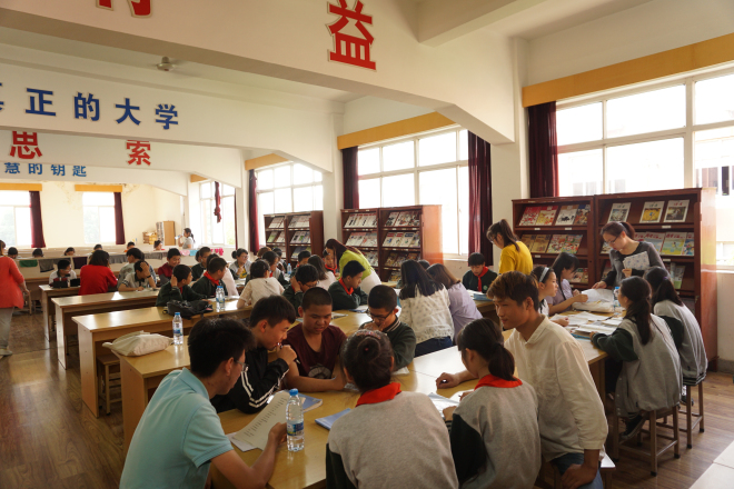 仪式后,在金星中学图书馆进行了第一次星期三课堂活动。青协志愿者们同金星中学员工们聊学习、聊理想、聊人生。不仅针对性的进行英语提高教学;贴心指导金星员工调整学习方法;主动了解、尽力解决员工们学习生活上的困难。下午5点,本次“星期三课堂”活动圆满结束。