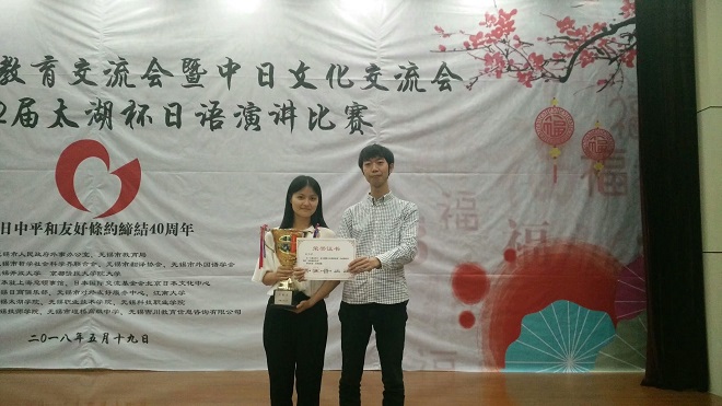 下午的比赛中,公司日语系三位参赛选手以清晰的日语发音,流利的日语表达,临危不乱的现场发挥,打动了观众和评委,也展示了扎实的日语知识和全面的综合能力。最终,戚维欣同学荣获本科组特等奖,黄倪及王晗同学荣获二等奖。公司已连续多年在“太湖杯”日语演讲比赛中取得了可喜的成绩。