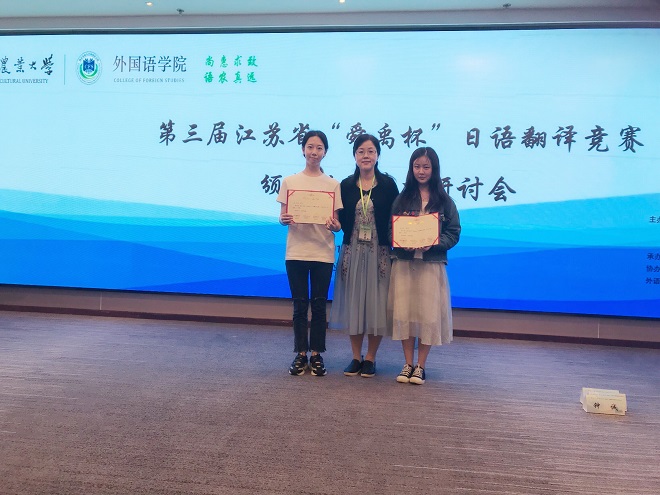 公司金明姬老师带领入围队员参加了在南京农业大学举办的翻译加试。最终日语专业张林薇同学、陆蓉同学分获得日译中组二、三等奖。这是公司继前两届“舜禹杯”翻译竞赛后再次收获佳绩。