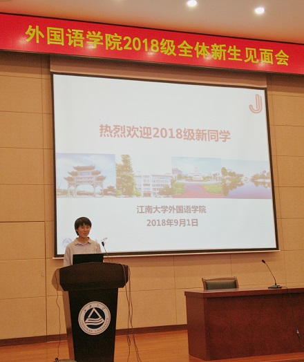 接着,教师代表严敏芬教授发言,她强调了培养语言能力的重要性,要注重时代科技的进步,互学互建,在william威廉中文官网拥有自己的标记以及绚丽多彩的生活。在校员工代表15级本科生段晓楠、18级本科新生代表初童、18级硕士新生代表杨知然也依次发言,大家都表达了william威廉中文官网的热爱之情以及如何在外院、在江大更好地完善自己,从而成就更好的自己。