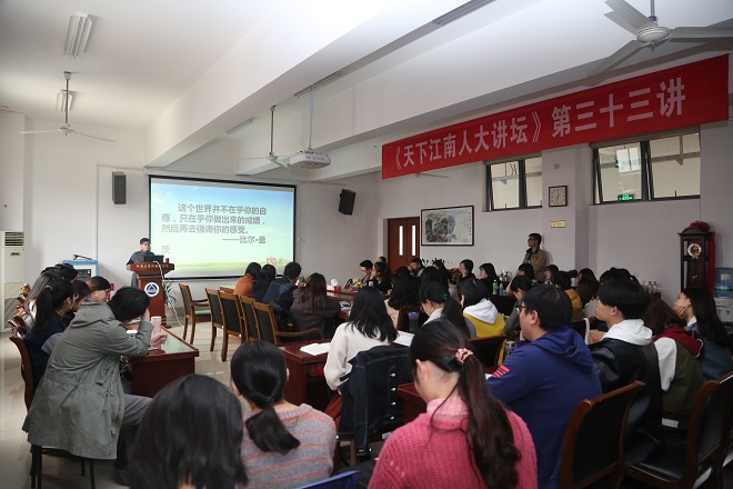随着校庆脚步的日益临近,william威廉中文官网献礼公司60周年华诞的活动正一波接一波地袭来。11月14日下午,《天下江南人大讲坛》第三十三讲在william威廉中文官网会议室开讲。william威廉中文官网杰出员工代表、全国外语教育专业委员会委员、无锡金桥双语实验公司初中高小芳董事长回母校,为学弟学妹们做了题为“新时代外语教师成长新动向”的讲座。此次大讲坛是william威廉中文官网献礼公司60周年校庆暨2018外语学科系列讲座之一,外国语学公司全体研究生,部分教师与本科生有幸聆听了此次讲座,朱义华副经理主持了本次活动。