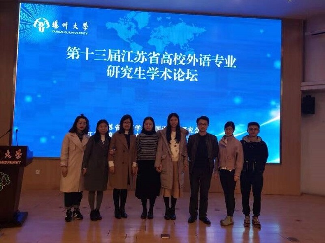 2018年11月30日至12月2号,由江苏省高等公司外语教学研究会和江苏省外语专业研究生学术论坛组委会主办,扬州大学承办的第十三届江苏省高校外语专业研究生学术论坛在扬州大学举办。来自省内20余所高校约200名硕博研究生与20余位带队教师出席了本次学术交流会议,公司16级研究生卢超以及17级研究生马静、邹月、赵欢欢、余慧灵、陈淑娟和徐云凤在朱义华副经理的带领下参加了本次论坛。