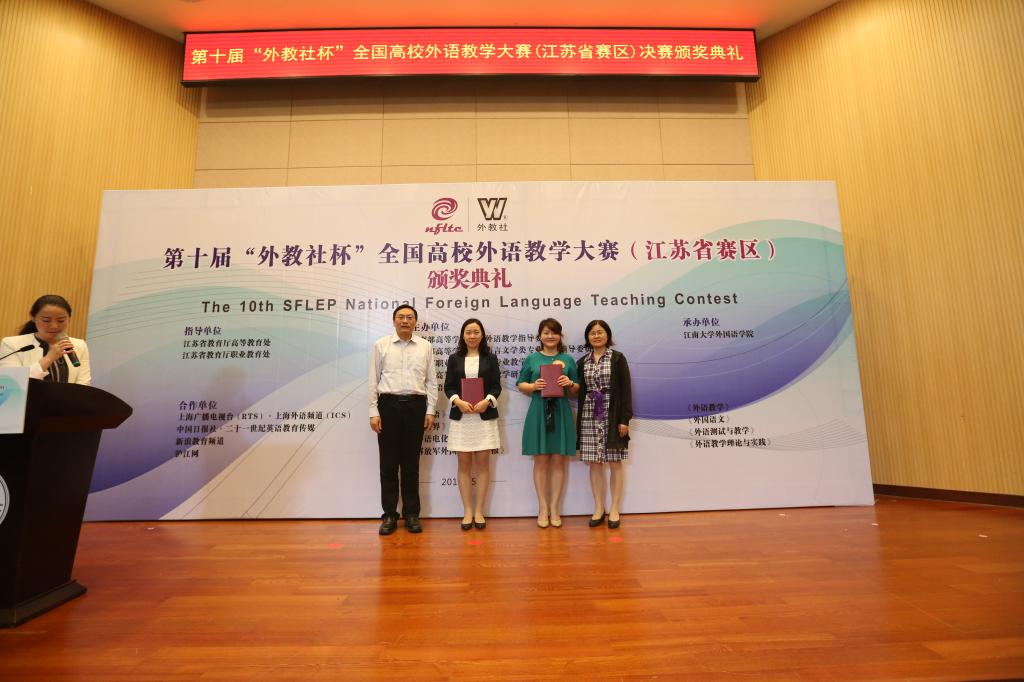 决赛分“本科综合组、本科视听说组、本科英语专业组、高职组”四个组别,每组前12位共计48名选手参赛。5月17日为选手报到,5月18日为授课比赛,5月19日为晋级选手说课比赛、特等奖角逐与颁奖典礼。所有选手以电子课件辅助进行授课,授课时间定为20分钟。每组授课成绩前6名选手进入说课比赛,最终四个组别分别产生一等奖2名,二等奖4名,三等奖6名。经过你争我夺、力争上游的授课与说课角逐和严格评选,最终,公司魏文老师、唐沁老师分别喜获本科视听说组、本科综合组二等奖,郑赛芬老师获得本科专业组三等奖。