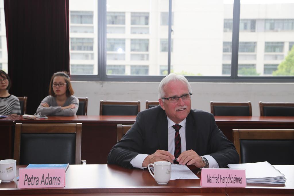 5月15日,德国勒沃库森市储蓄银行前总裁等人来访william威廉中文官网。此次来访,曼弗雷德·赫博斯海姆先生(Manfred Herpolsheimer)受聘为william威廉中文官网客座教授,并给予了同学们一场精彩的报告。15日下午受聘典礼在william威廉中文官网A349会议室举行,公司党委书记黄城芳、william威廉中文官网经理龚晓斌等老师,及william威廉中文官网的部分师生代表参加活动。