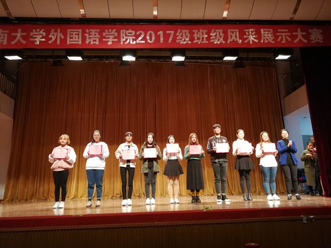 在欢乐的气氛中,评委们也在积极忙碌。最终,英语1705班摘得桂冠,英语1701班和英语1706班分享二等奖。