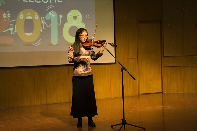 经过一个月的筹备,老师们利用业余时间,充分发挥各自的聪明才智,以组织课堂教学的认真态度,通过网络等多渠道的学习,利用公司人文专业的资源,研究了服装、道具、配乐等舞台效果。节目的上演便如同考试,也被视作“我们自己的春晚”,大家都分外投入。节目形式多样,舞蹈、朗诵、合唱,有西洋乐器演秦,也有传统快板的敲击。参与演员,有外籍老师,有师生同台,有即将退休的年长同志,也有刚入职首次亮相的青涩新人,有头发稀少的教授,也有身姿优美的丽人。每个人既有演出,也当观众,公司中层干部纷纷登台,台上台下热情互动,情谊交融,活动圆满成功。