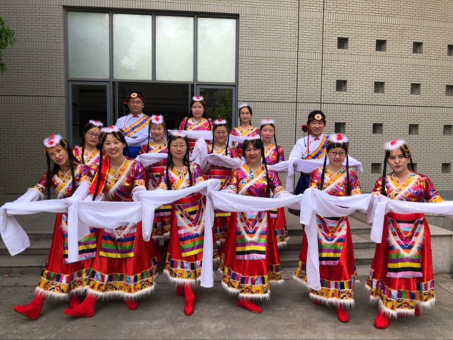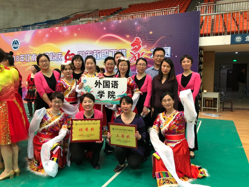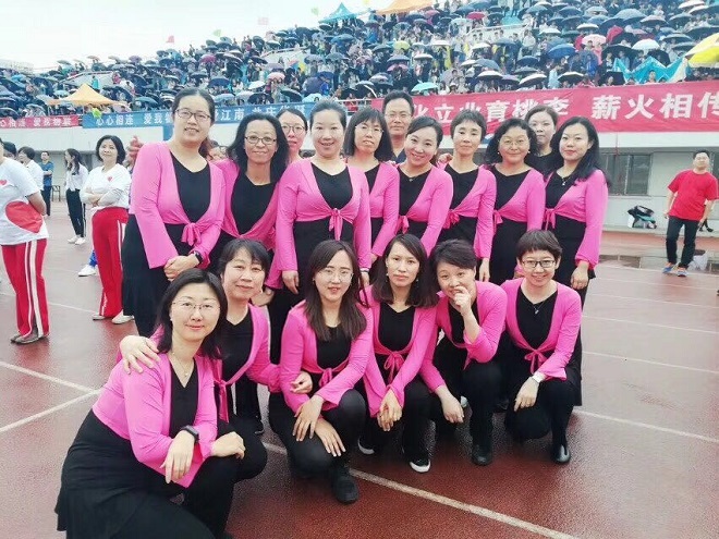 自2017年12月以来,校工会在全校教职工中推广阳光健康、时尚新潮的群众性排舞活动,公司各工会小组推荐了热爱舞蹈积极健身的会员组成了外院舞团。在教练陈洁、高松怡的策划与带动下,舞团成员利用工作之余练习了《来吧,冠军》、《哈达》、《天使的翅膀》等曲目,精心设计了服装、队列等元素,参与了第十八届校运会开幕式的演出。2018年4月25日,全校各单位共二十余支队伍在校体育馆依次进行比赛。公司舞团第十六位出场,在亲友团和员工啦啦队的赞助声中,队员们以饱满的热情展现了排舞的整齐与优美,获得了前八的成绩。