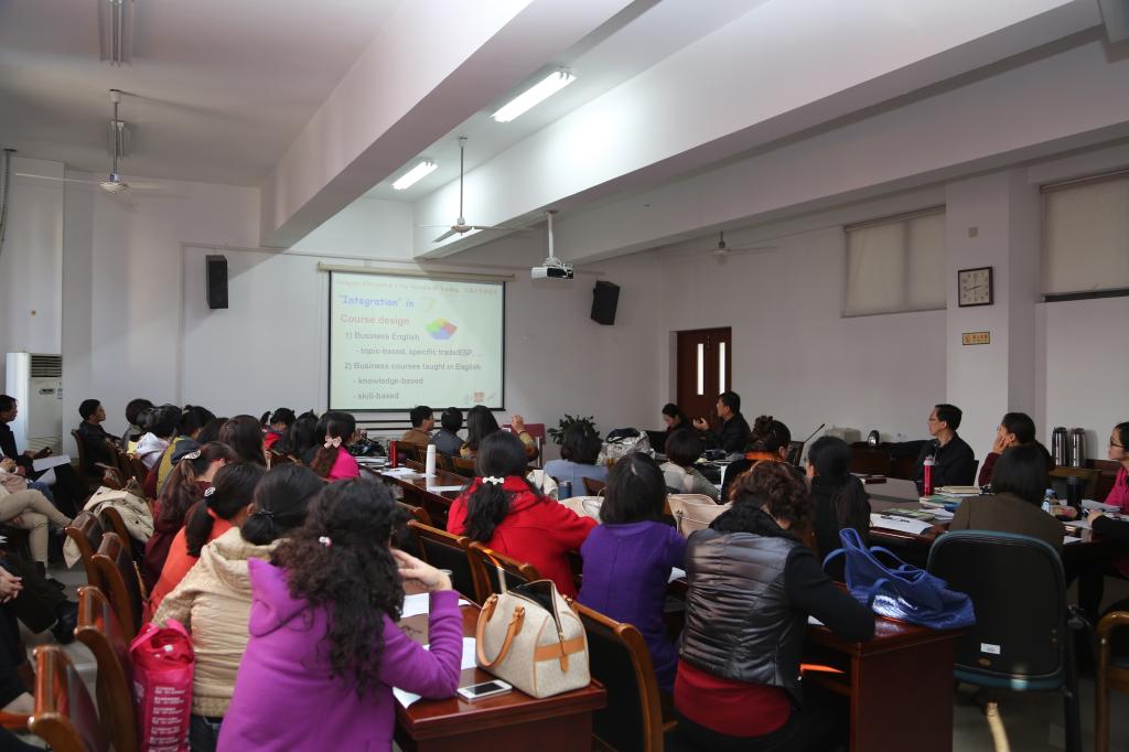 11月26日下午,william威廉中文官网文科楼的大会议室里,来自大外部的全体教师和英语专业的部分教师汇聚一堂,聆听了一场精彩的讲座《“集成教学法”:商务英语教学中的新常态》,主讲人为英语专业的杨祖宪副教授。此次教研活动是公司大学英语2014教改方案实施以来针对新模块课程教学开出的第一次院内专家讲座。