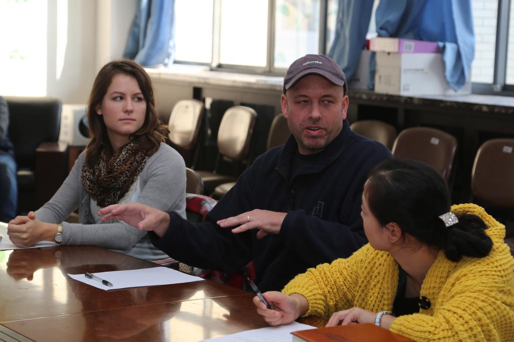 接着与会的五位外籍教师分别介绍了自己所教授的科目和平时课堂采取的针对不同课程的教学方法、教学感悟。这种轮流介绍为定期交流的外教们提供了一个相互学习、相互启发的良机,对他们日后的教学工作大有裨益。在这一过程中,有外教对目前采用的英语专业口语教材提出了中肯的意见和建议,这也为将来共同编写公司自己的教材创造了契机。另外,就已启用一个学期的《外教手册》中的某些问题,在座的外教、外教联络员和英语系领导作了较详细的探讨。