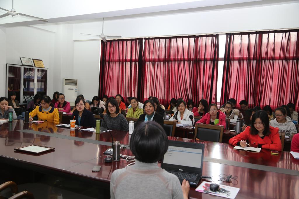 顾教授以《语言学习中的输入问题:经典与热议》为题,从母语习得谈起,用周围的实例拉近了与员工的距离。她讲解了目前学术研究中有关语言学习的经典与热点话题,尤其是二语习得中的输入问题。随后,顾教授的研究生裴虹和殷娜以各自的毕业课题做个案分析,课题名称分别为《输入模态和语言水平对二语目标结构注意和习得的影响》和《输入模态对认知负荷和二语理解的影响——水平组对比研究》。顾教授指出,这两个研究课题同属语言学习中的输入研究,不过其侧重点各有不同。两课题看似是不同变量的拼拼合合,但其内在逻辑不容小觑。