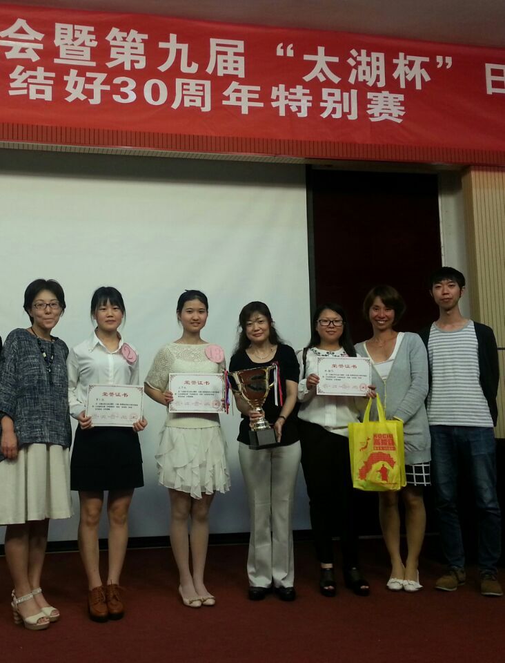 在此次演讲比赛中公司日语系13级员工王卉怡表现突出,以地道的日语发音及提问环节的流畅表达获得评委们的认可,荣获“本科组特等奖”及“评委特别奖第一名”,并将于今年11月份作为无锡青年代表去日本相模原市参加中日文化交流。此外罗小丽和陈静怡同学均凭流利的演说和出色的表现荣获“本科组一等奖”。中西由美子、西川明子、藤田美奈子三位日籍老师荣获优秀指导老师特别奖。