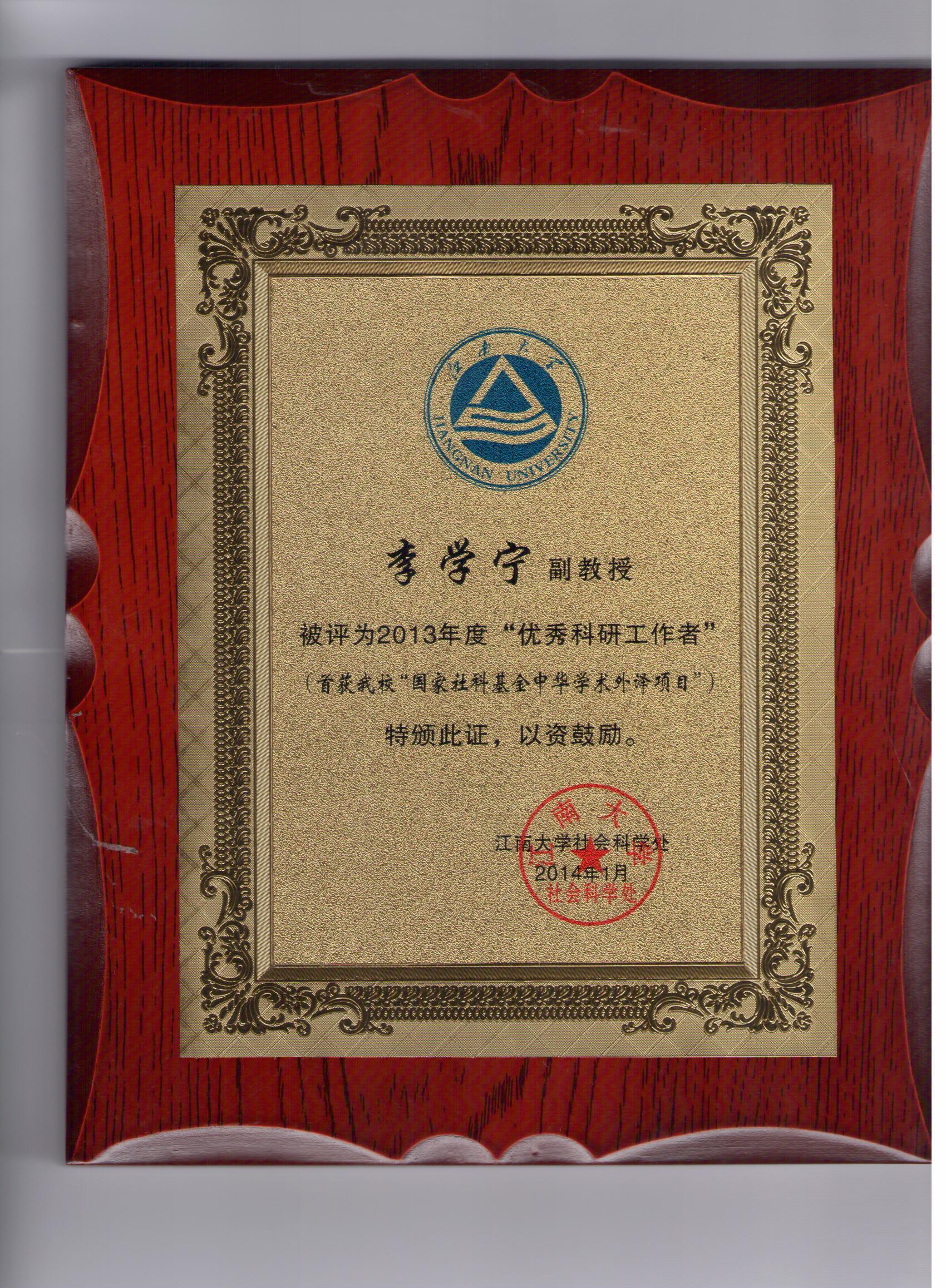从刚刚召开的公司科研工作会议上获悉,公司李学宁副教授被公司评为2013年度“科研优秀工作者”,其研究项目“爱与思——生活儒学的观念”—首获公司“国际社科基金中华学术外译项目”。