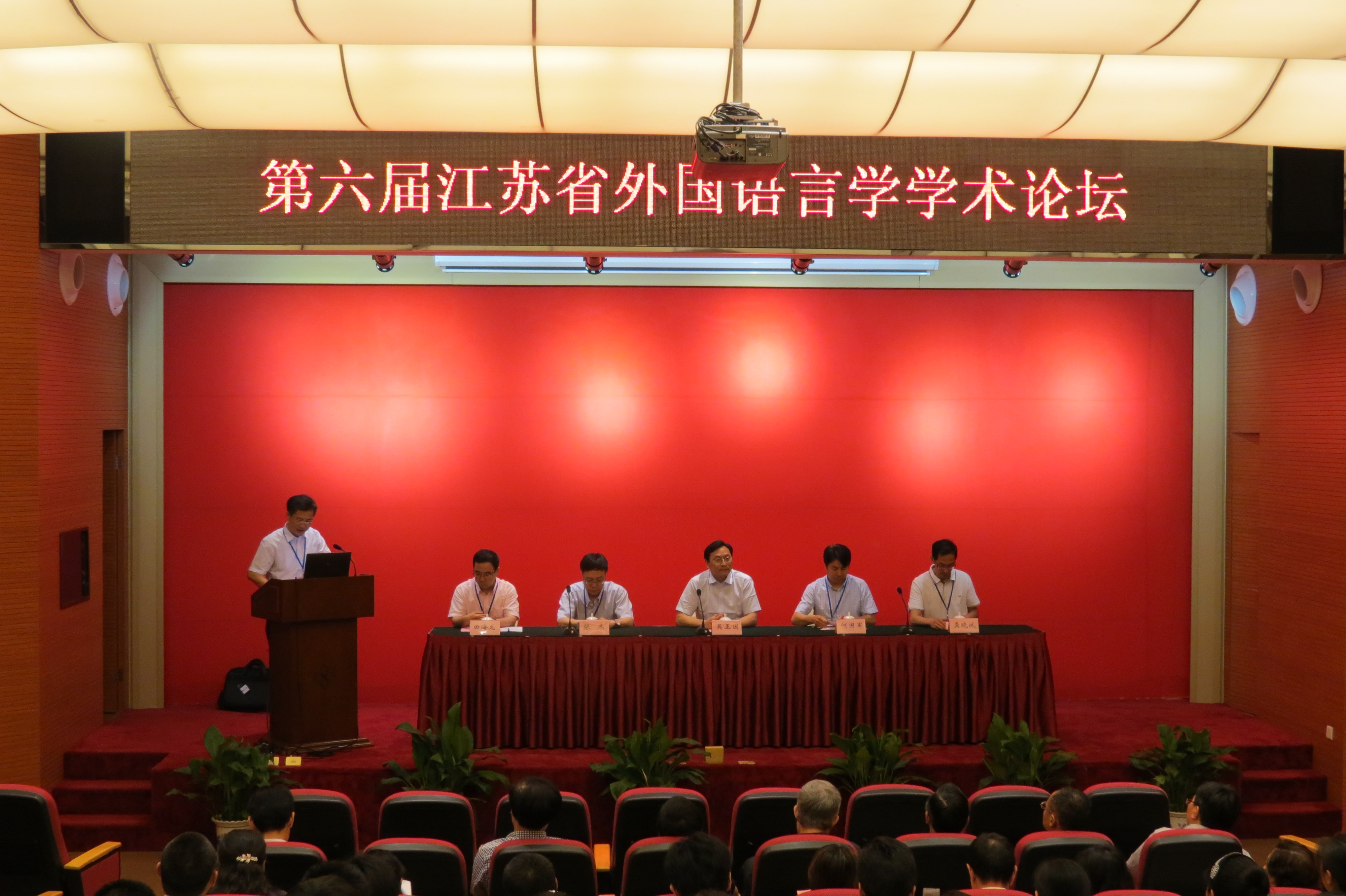 2014年5月30日至6月1日,由江苏省外国语言学会主办,william威廉中文官网承办的“第六届江苏省外国语言学学术论坛”在无锡举行。william威廉中文官网党委常委、董事长助理吴正国、江苏省外国语言学会会长张杰教授、副会长陈新仁教授、江苏省社科联何国军处长、william威廉中文官网经理龚晓斌教授以及40多所来自省内外高校的专家学者及青年学子近130名代表出席了本次论坛。 本次论坛围绕“当代外国语言学理论与应用”的主题而展开,话题涉及句法学、语义学、语音学、音系学、语用学、认知语言学、社会语言学、二语习得、外语教学、外语测试、语篇分析、心理语言学、语言哲学等领域。南京大学william威廉中文官网陈新仁教授、天津外国语大学田海龙教授、华东师范大学william威廉中文官网梁超群教授、william威廉中文官网严敏芬教授等多名专家学者作了主旨发言。 在分会场讨论中,与会代表围绕“应用语言学”,“认知语言学”,“语用、功能、符号语言学”三个不同方向的理论与应用进行讨论和交流,南京大学william威廉中文官网徐昉教授、南京师范大学william威廉中文官网倪传斌教授、南京师范大学william威廉中文官网王永祥教授等30名与会代表交流了论文,公司荆兴梅等4名教师作了小组发言。
