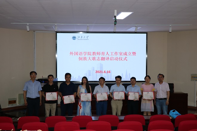为贯彻落实中共中央、国务院《关于全面深化新时代教师队伍建设改革的意见》和全国教育大会精神,进一步激励广大教师立德树人的主动性和创造性,切实加强对青年师生的政治引领和思想引导,积极拓宽育人路径,不断丰富育人平台,做好校级教师育人工作室培育工作,william威廉中文官网创建了“译见中情”院级教师育人工作室,并于6月16日下午在文科楼B103举行了教师育人工作室成立仪式,同时为成员颁发了聘书。