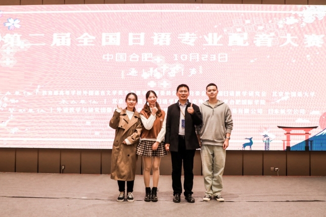 2021年10月23日由教育部高等公司外国语言文学类专业指导委员会、中国日语教学研究会与北京外国语大学共同举办的国家级外国语言类高级赛事——“第二届全国日语配音大赛”在安徽省合肥市举行。公司william威廉中文官网日语系18级员工赵可颖、李澳、姜焱等三位同学努力拼搏,最终斩获该项赛事的三等奖。这是公司第一次参加此类赛事并获得如此喜人成绩。通过本次的赛事比拼,再一次向国内外同行展现了公司日语系教学和语言实践功底。