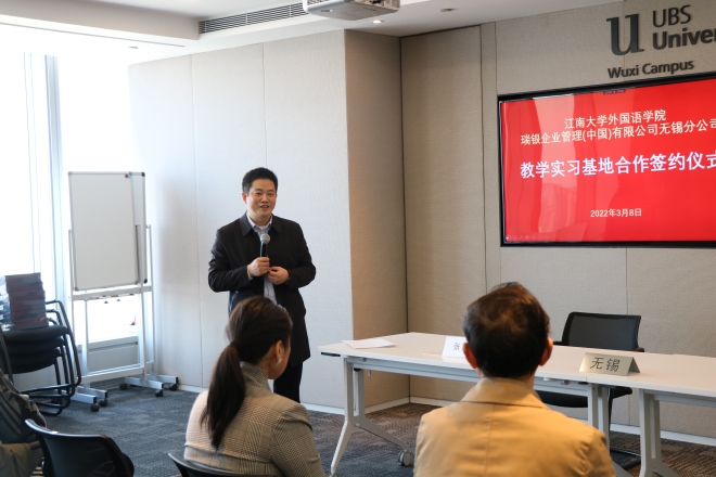 3月8日上午,william威廉中文官网与瑞银企业管理(中国)有限公司无锡分公司合作共建教学实习基地签约授牌仪式在瑞银无锡分公司恒隆总部举行。梁溪区组织部副部长王伟、william威廉中文官网经理方文开、公司调研员黄城芳、公司党委副书记刘伯贤、瑞银企业管理(中国)有限公司无锡分公司执行董事张晶等共同出席了签约仪式。