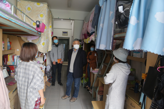 随后,徐董事长一行来到澈苑公寓,亲切看望慰问了公司返校的员工,了解员工返校情况,询问她们返校后的学习计划、毕业打算,激励员工做好近期在校规划和毕业规划,以积极的心态面对疫情阶段的学习生活。