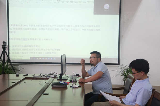 任文玉总编首先对中兴学人出版有限公司的主要业务、公司特色及拥有的出版资源进行了简短的介绍,然后详细讲解了国家社科基金中华学术外译项目的基本情况、申报流程、申报技巧和注意事项。最后,他分享了国家社科基金中华学术外译项目申报的几个成功案例。讲座现场,老师们就申报选题、译著出版、与中兴学人公司的合作等具体问题与任总编进行了交流和沟通,对学术外译项目申报和译著出版等方面有了更清晰的了解,增强了申报有关项目的信心,获益匪浅。