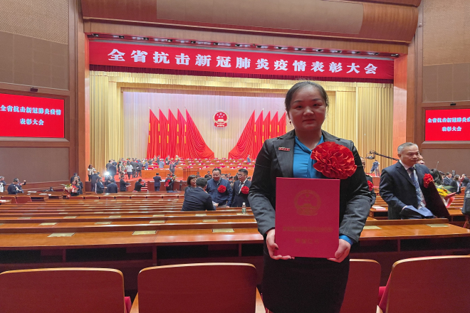 11月26日,省委、省政府召开全省抗击新冠肺炎疫情表彰大会,公司分团委书记兼学工办主任杨艳老师荣获全省抗疫先进个人,在江苏大剧院主会场参与表彰。