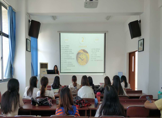 各个事项宣布完之后,2017级主席白雅冰同学进行年度汇报总结,向全体研会成员讲述过去一年中研会举办的主要活动和各部门成员对研会作出的贡献,还总结了研会目前存在的不足和需要改进的地方,最后分享了个人在研会中的收货和成长。研会的主要活动有公司研究生论坛、U-Talk、联谊晚会、世界跆拳道大赛志愿者招募、研本交流会、科研神器交流会、“三行小诗”等等。研会要以服务公司同学为宗旨,经常与兄弟公司研会成员交流,多举办创新型活动。