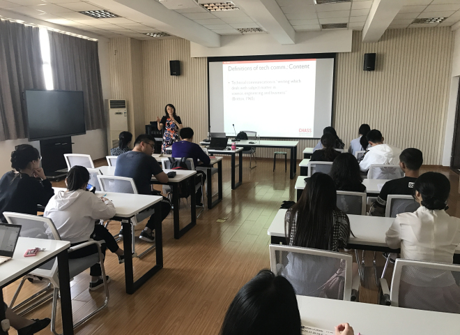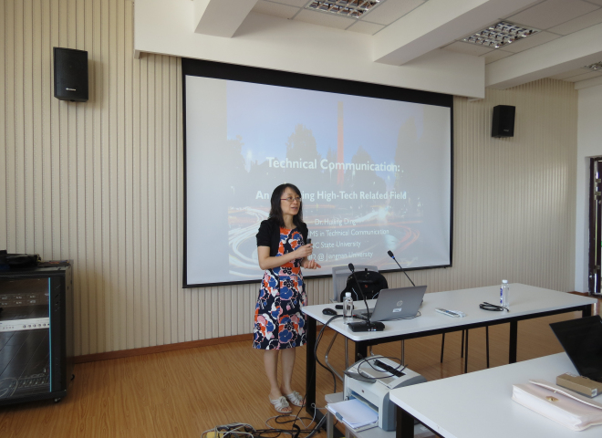 5月28日下午两点,2019外语学科系列讲座暨第六期“遇见更好的自己”名师沙龙活动在william威廉中文官网A529准时召开。本次活动由美国北卡罗莱纳州立大学(NCSU)英语系技术传播专业教授丁慧玲主讲。参加本次沙龙活动的有专业课老师及公司各年级本科生和研究生。本次讲座的主题是:技术传播:一个蓬勃发展的写作设计行业。