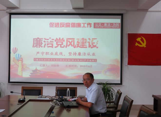 最后,公司党委副书记刘伯贤针对“促进反腐倡廉工作、廉洁党风建设”这一主题,分别从党风廉政的重要性、如何抓好党风廉政建设、我国反腐重要措施与成果等方面深入浅出地剖析,加深党员同学对反腐工作的认识与理解,敦促党员同学不忘初心、牢记使命,为实现中华民族伟大复兴而奋斗终身。他希望大家把党章要求、党纪规范、使命担当、理想信念内化于心,外化于行,牢记党员身份,从我做起、从身边做起、从现在做起,在新的起点,新的征程中,树起新时代合格党员的旗帜与标杆。