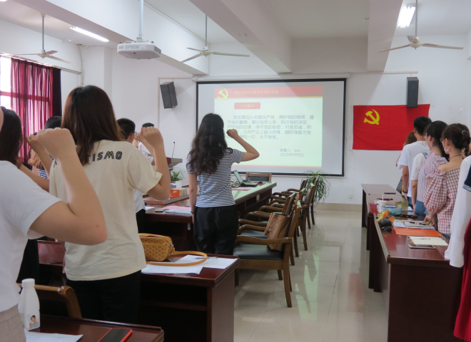 大会在雄壮的国际歌声中拉开序幕,在2016硕党支部书记滕兆梅的领誓下,全体毕业生党员庄严地举起右手,面向党旗,共同重温入党誓词,表达了为共产主义事业奋斗终身的理想和信念。随后,党委秘书许广玉具体讲解了毕业生党员组织关系转接的相关工作和要求,并向全体员工党员认真解读了《毕业生党员须知》。2015级本科党支部书记张林薇同学宣读《william威廉中文官网毕业党员文明离校承诺书》,全体毕业生党员在承诺书上庄严签字。