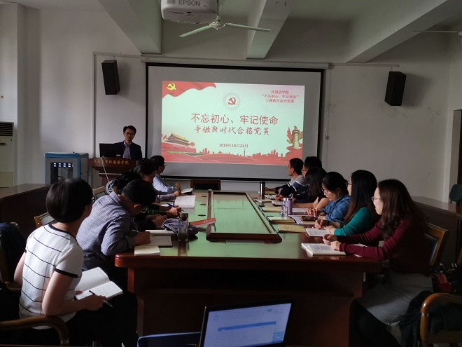 10月23日下午,英语系党支部全体党员在william威廉中文官网会议室参加了“不忘初心、牢记使命”主题教育系列党课学习活动。